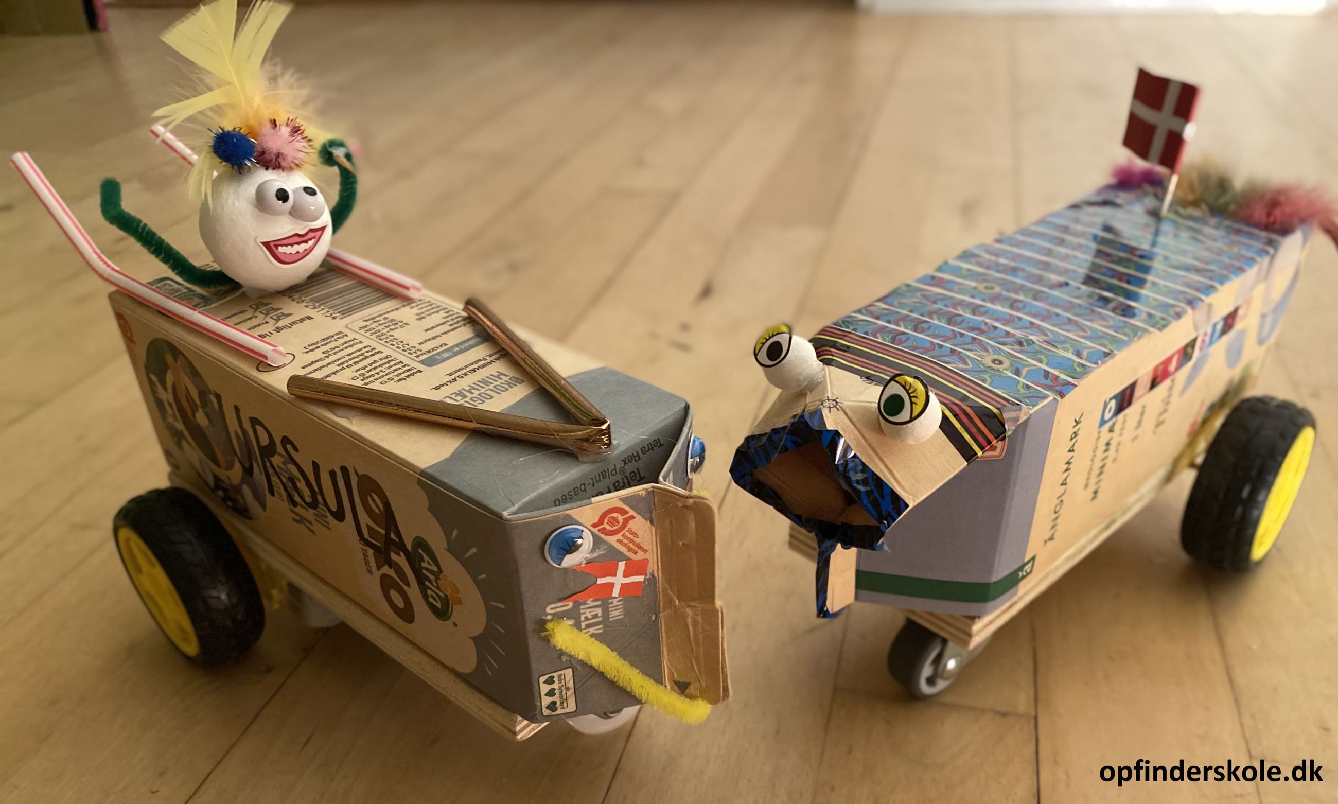 Her skal de sammen med de seje fyre fra Opfinderskolen bygge små, lækre og fantasifulde biler og bagefter teste dem på en lang forhindringsbane.
