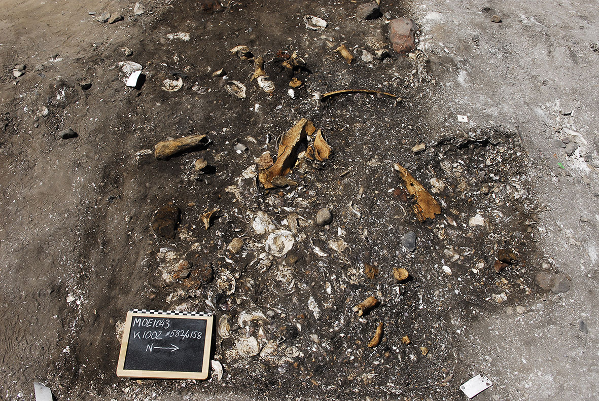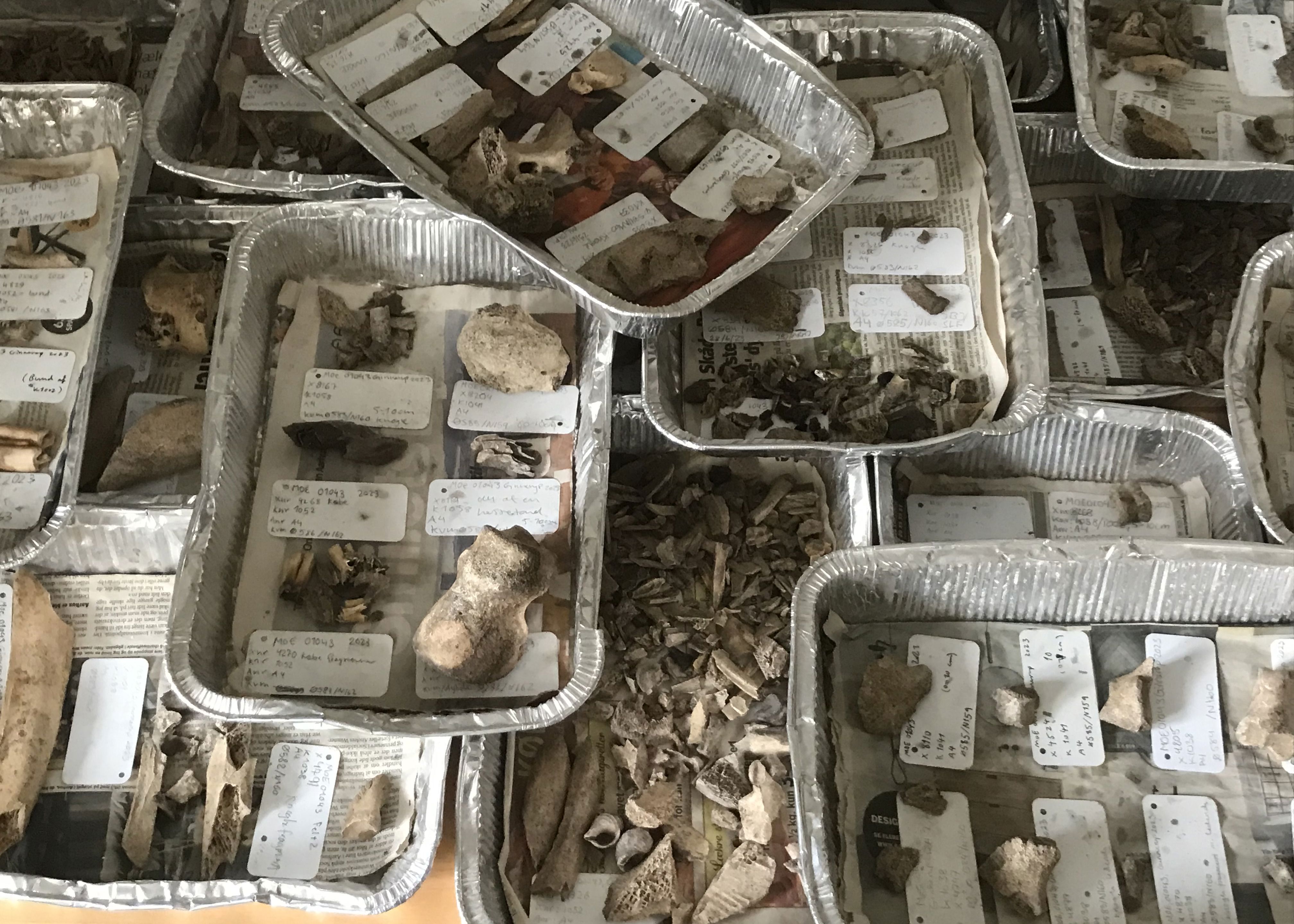 På dette billede ses en ansamling af større hesteknogler i Ginnerup, måske en slagteplads eller lignende.