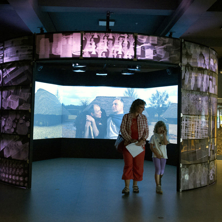 Tidshjulet visualiserer og iscenesætter forskellige nedslag i liv levet i Randers og omegn gennem tusindvis af år.