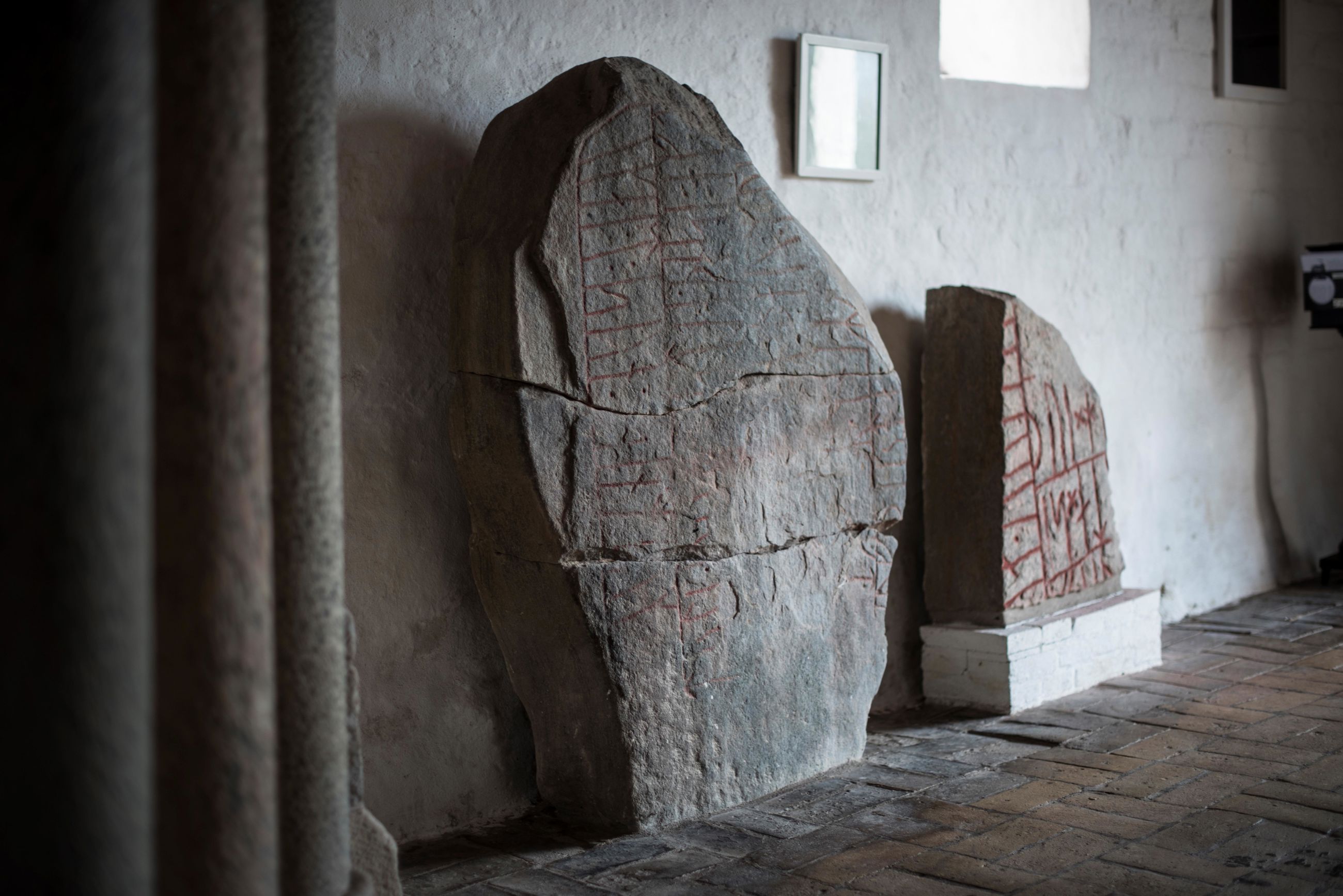 Ålum Church. Four runic stones in one go